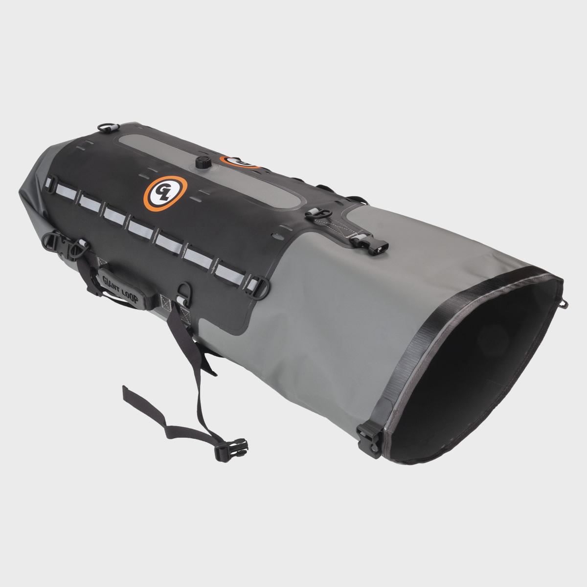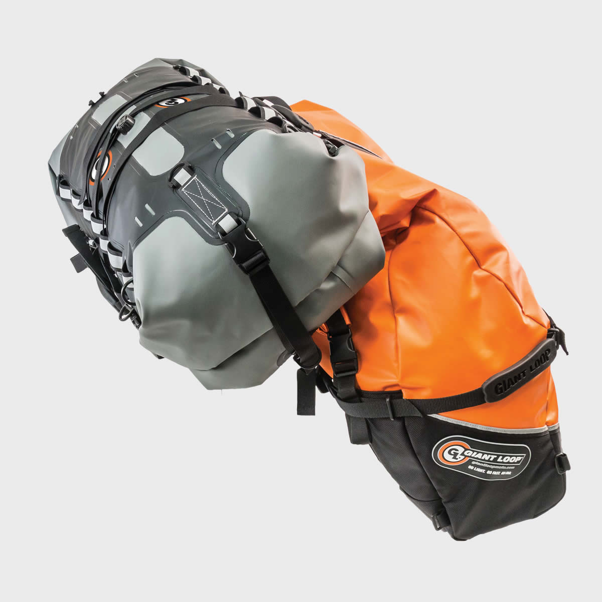 車両での冒険に理想的なアンカーストラップシステムを統合したエクスペディションサイズのロールトップドライバッグです。48リットルの防水ストレージを備え、Giantloopのコヨーテやグレートベイスンのサドルバッグ、そしてパニアのフルラインとシームレスにペアを組むことができます。