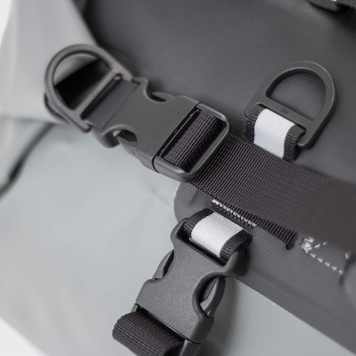 両端に開口部があるため、サドルバッグやパニアから紐を外したり、ラックから外したりすることなく、素早く簡単にアクセスできます。便利なエアパージバルブにより、パッキング時にギアとバッグをコンパクトに圧縮することができます。付属の2本のキャリーストラップを利用することで、バックパックにして簡単に持ち運ぶことができます。